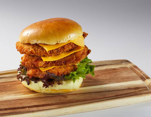 Chicken Fried Patty, With Fried Halloumi, Relish, Salads in Lovely Brioche Bun